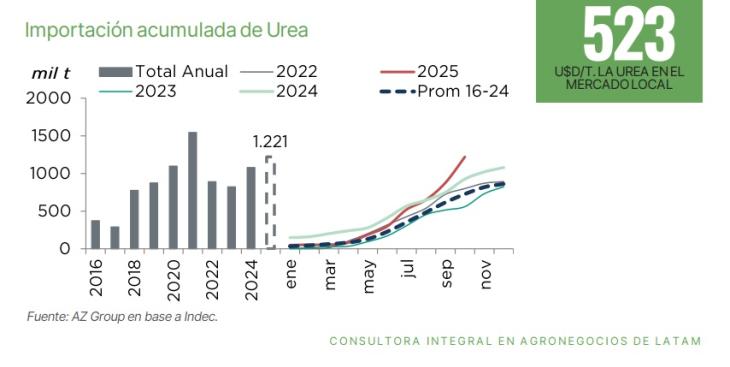 De acuerdo a un informe elaborado por la Consultora AZ Group -en base a datos del INDEC-, en octubre se importaron 344.000 toneladas de urea, mientras que el acumulado anual de este nutriente llegó a 1,2 millones de toneladas.