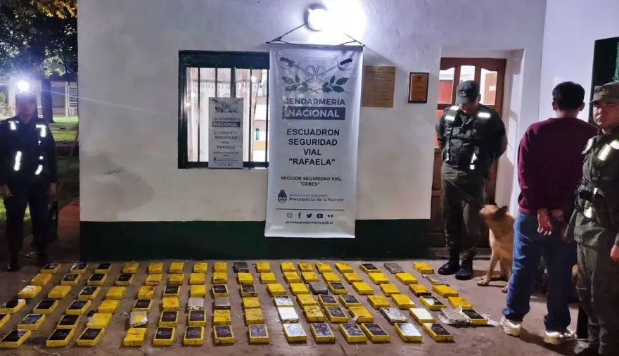 Un operativo de Gendarmería Nacional permitió secuestrar más de 105 kilos de cocaína que eran transportados en un automóvil proveniente de La Quiaca, durante un control realizado en el kilómetro 289 de la Ruta Nacional 34. La detección se produjo en horas de la noche, cuando efectivos de la Sección Seguridad Vial “Ceres”, dependiente del Escuadrón Seguridad Vial “Rafaela”, inspeccionaron el vehículo.