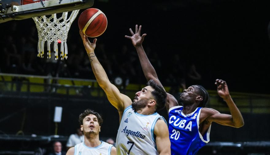 El encuentro tuvo un inicio parejo, con Argentina imponiendo su defensa pero sin efectividad en ataque. El primer cuarto terminó apenas 19-18, reflejo de la puntería errática del local y de algunos aciertos cubanos desde el perímetro. En el segundo parcial, la historia comenzó a cambiar: una ráfaga de 12-1, liderada por Francisco Cáffaro con ocho puntos consecutivos, abrió la primera diferencia clara y permitió llegar al descanso arriba por 41-27.