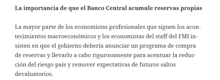 De lo contrario, el Banco Central se vería obligado a esterilizar esos pesos, retornado a instrumentos como las LEBAC y las LELIQ, que orgullosamente dicen desde el gobierno que eliminaron.
