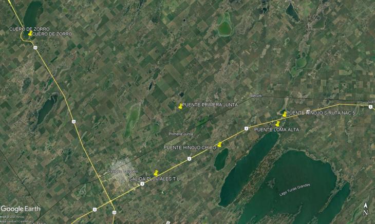 Los restantes estarán a la salida de los pluviales de la ciudad de Trenque Lauquen y también en el Río Quinto, sobre puentes de la Ruta Nacional N.° 5.