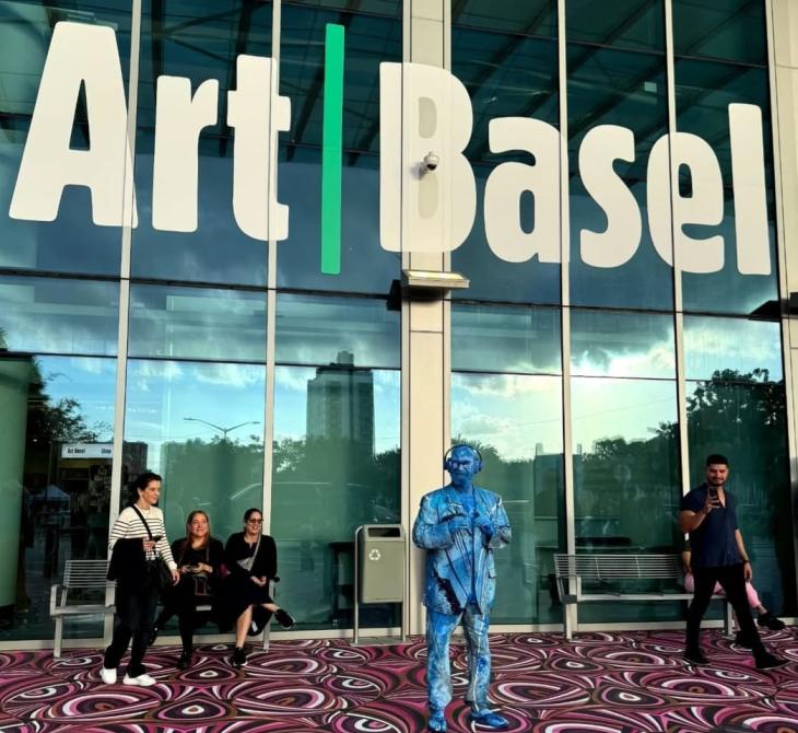 El artista recordó su participación performática en Art Basel Miami, donde presentó “Ardroide”, un personaje pintado por completo con la paleta de su serie “Exabrupto de color”.