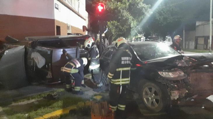 Un violento siniestro vial dejó seis personas heridas este lunes en el barrio porteño de Flores, luego de que dos autos chocaran en el cruce de Mariano Acosta y Zuviría (ver mapa) y uno de ellos terminara volcado sobre la vereda, atropellando a una familia que caminaba por la zona.