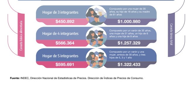 En noviembre, un hogar tipo 2 (4 integrantes, 2 adultos y 2 niños) requirió $566.364 para cubrir la Canasta Básica Alimentaria y por ende, no ser indigente.