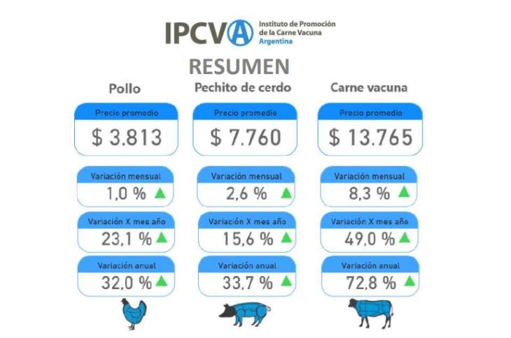 De acuerdo al IPCVA, las principales subas en precios promedio durante el mes de noviembre se dieron en la picada común (12,7%); matambre (11,1%) y la tapa de asado, con 9,3%. En tanto, los menores incrementos se vieron en paleta (5,8%); carnaza común (6,2%) y el vacío, con 6,4%.