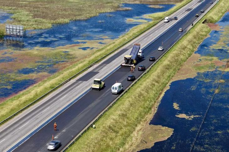 Dos trazas concentran el mayor volumen de trabajos. Por un lado, la Autovía 2, principal acceso a la costa atlántica, atraviesa una repavimentación integral que se ejecuta por etapas. Actualmente avanzan los trabajos entre Dolores y Maipú en ambos sentidos, mientras se licitan nuevos tramos para completar, por primera vez, la puesta en valor de toda la ruta hasta Mar del Plata.