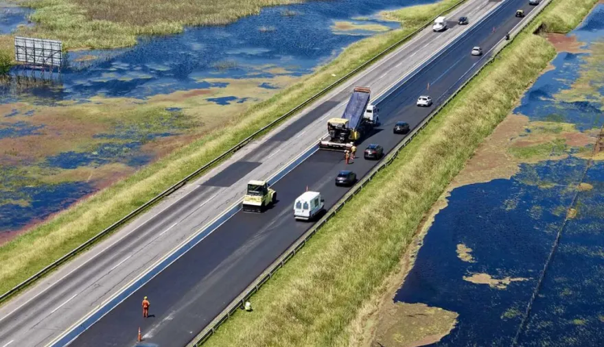 Dos trazas concentran el mayor volumen de trabajos. Por un lado, la Autovía 2, principal acceso a la costa atlántica, atraviesa una repavimentación integral que se ejecuta por etapas. Actualmente avanzan los trabajos entre Dolores y Maipú en ambos sentidos, mientras se licitan nuevos tramos para completar, por primera vez, la puesta en valor de toda la ruta hasta Mar del Plata.