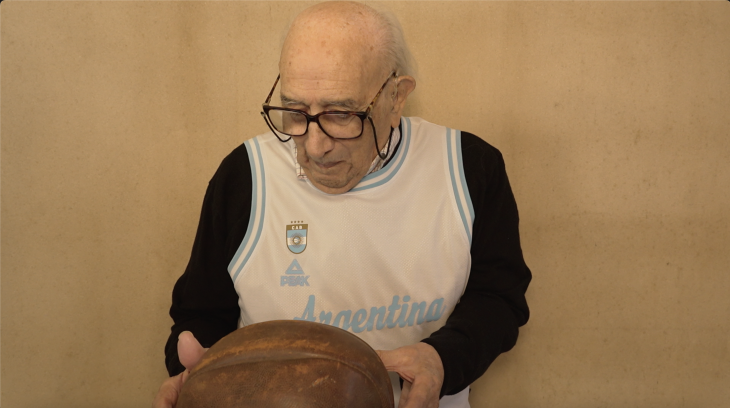 Ricardo Primitivo González, a sus 100 años, recibió el Olimpia de Brillantes, en el 75° aniversario del único campeonato mundial de básquet ganado por Argentina.