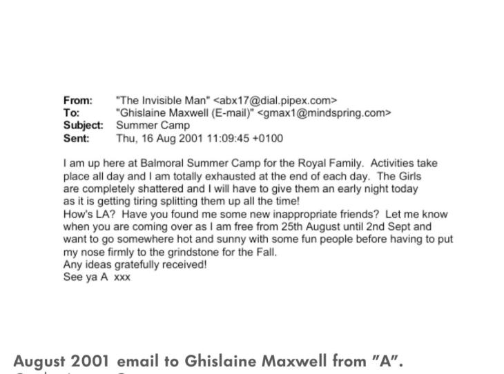 El email está fechado en agosto de 2001 y fue enviado desde Balmoral, el tradicional castillo donde la familia real pasa sus vacaciones de verano. El remitente aparece identificado solo con la letra “A” y el mensaje, aunque breve, generó conmoción por su contenido y por el contexto en el que hoy se lo analiza.