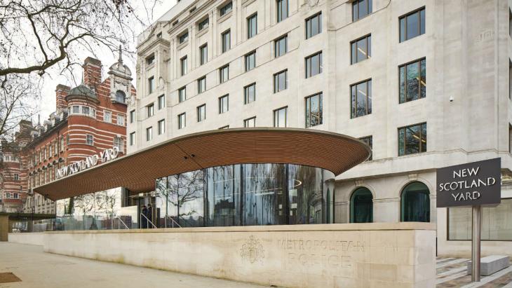 Fachada de la Policía Metropolitana de Londres, fuerza a cargo de la investigación que derivó en los nuevos cargos.