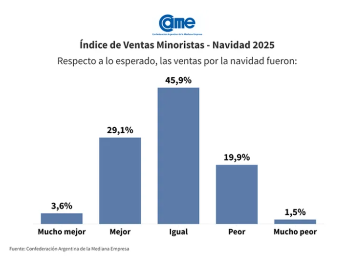 La percepción de los comerciantes también mostró un balance dispar. El 32,7% afirmó que las ventas fueron mejores o mucho mejores de lo esperado, mientras que un 21,4% consideró que estuvieron por debajo de sus previsiones. En tanto, el 45,9% restante señaló que los resultados se ubicaron en línea con lo proyectado.
