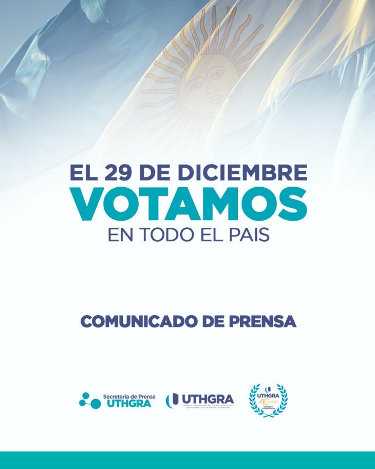 La Cámara Nacional de Apelaciones del Trabajo levantó la suspensión que pesaba sobre el proceso electoral de la Unión de Trabajadores del Turismo, Hoteleros y Gastronómicos de la República Argentina (UTHGRA) y habilitó a la Junta Electoral a fijar una nueva fecha de elecciones, que finalmente se realizarán el 29 de diciembre en todo el país.