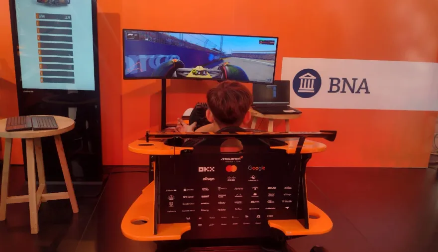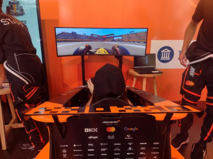 Si bien el monoplaza es la estrella principal de la muestra con la que todos quieren tener una selfie, el simulador estacionado detrás también atrae una fila interminable de gente. Para acceder a él, todos aquellos clientes del banco y de la tarjeta que hayan tenido compras desde $ 50.000 en el mencionado shopping pueden divertirse tal como lo haría el británico Lando Norris, el último campeón de la F1.