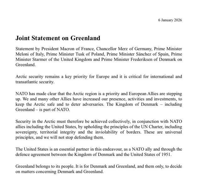 Las declaraciones de Trump sobre la necesidad de que Estados Unidos controle Groenlandia introdujeron una tensión inédita dentro de la OTAN. La isla, territorio autónomo de Dinamarca, ocupa una posición estratégica clave en el Ártico, tanto por su valor militar como por sus recursos naturales. La insinuación de una posible anexión, incluso por la fuerza, quebró uno de los supuestos centrales de la alianza: la inviolabilidad territorial entre aliados.