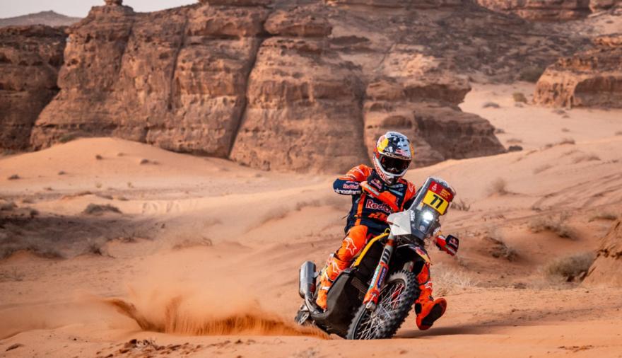 🏍️La arriesgada maniobra del argentino Benavides para esquivar a los camellos en la ruta del Rally Dakar