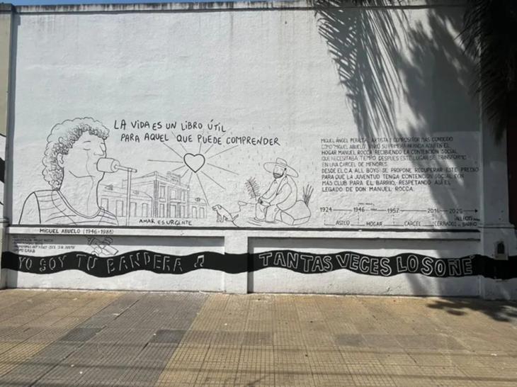 Después de la calle para Ricardo Iorio en Rosario y la esquina Charly García, llega un importante mural para recordar y homenajear a una de las voces más particulares y distintivas de la historia del rock nacional: Miguel Abuelo. Está ubicada en el Hogar de Niños que se encuentra a tres cuadras del preventorio de madres tuberculosas Manuel Rocca, donde la madre del cantante fue internada tras padecer tuberculósis.