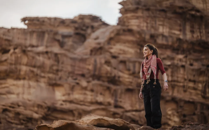 La Reina Rania de Jordania visitó el Wadi Rum, uno de los sitios naturales más reconocidos de Jordania, acompañada por su hija, la Princesa Salma. El recorrido se desarrolló en el sur del país, en una región conocida mundialmente como el Valle de la Luna, célebre por sus imponentes formaciones rocosas, cañones y dunas de tonos rojizos.