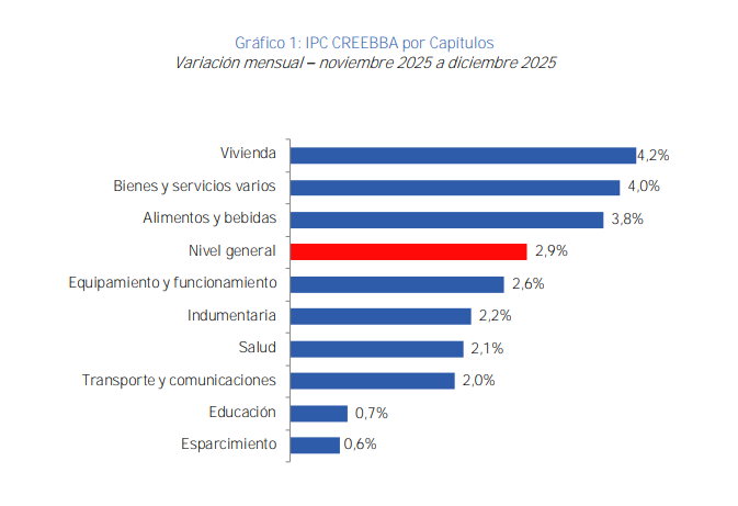 Sin embargo, el viernes se conoció la inflación porteña y no fue auspicioso en la antesala del dato nacional. Los precios volvieron a acelerarse en diciembre: escalaron 2,7%, tres décimas por encima del 2,4% de noviembre. Con este dato, el acumulado del 2025 alcanzó el 31,8%.