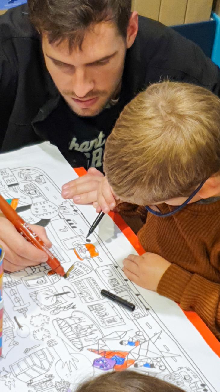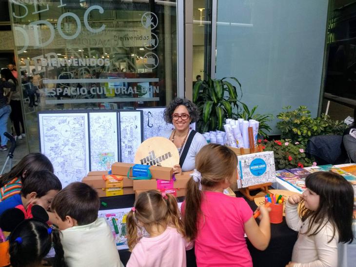 Las láminas de Mil Mundos están pensadas para el trabajo colectivo, en el piso o en mesas, y permiten que chicos de distintas edades participen al mismo tiempo. “Sin palabras, abrís lugar a la palabra”, señaló, al describir cómo, durante las actividades en ferias y festivales, los niños comienzan a hablar entre ellos, inventar historias, compartir recuerdos o preguntarse por los lugares que aparecen ilustrados.