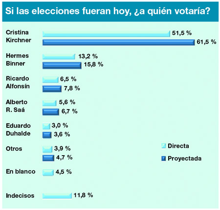 El sondeo, publicado por Página/12 en 2012, mostraba que, apenas un mes después de haber asumido su segundo mandato, Cristina Fernández de Kirchner alcanzaba una intención de voto del 61,5%, superando incluso el 54% obtenido en la primera vuelta de las elecciones presidenciales de octubre de 2011.