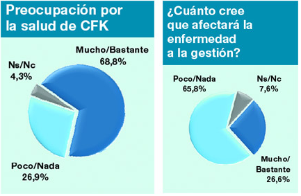 Además de la intención de voto, el estudio había abordado la percepción sobre la salud presidencial, luego de que se descartara que la mandataria padeciera un carcinoma. Un 68,8% de los encuestados manifestaba estar muy o bastante preocupado por su estado de salud, aunque un 65,8% consideró que ello no afectaría el desarrollo de su gestión. En paralelo, un 59,8% evaluaba que el nuevo mandato sería positivo, frente a un 30,7% que lo consideraba negativo.