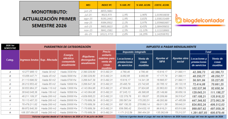 Conocido ayer el dato del IPC de diciembre (2,8%), la inflación acumuló en el segundo semestre de 2025 un 14,3%, y por ende, en la misma proporción subirán las escalas del monotributo.