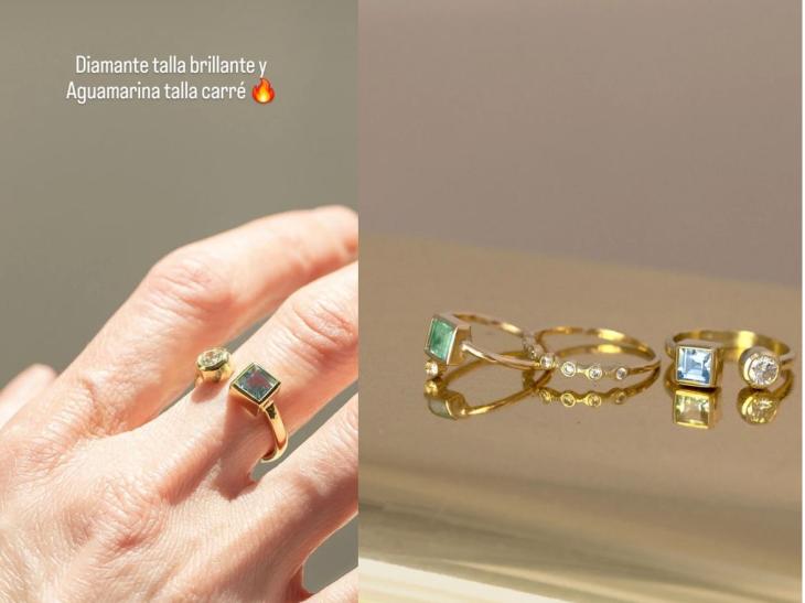 Según se pudo ver en imágenes y publicaciones de la joyería encargada de la pieza, el anillo está realizado en oro 18 kilates y combina dos piedras: un diamante talla brillante y una aguamarina talla carré. La elección no es casual: se trata de un diseño delicado, contemporáneo y alejado de los clásicos solitarios que suelen dominar este tipo de joyas.