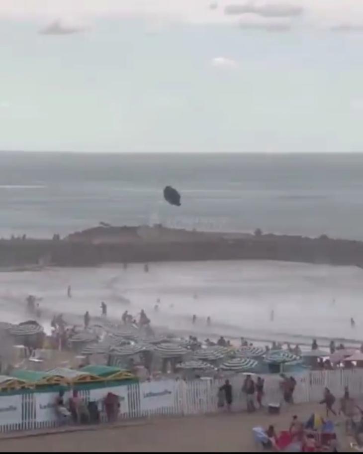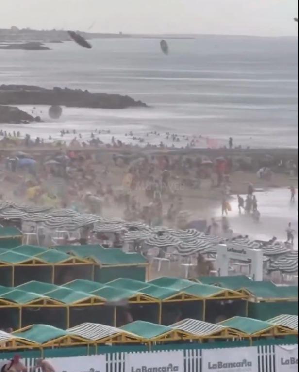 Una apacible jornada de playa se vio nuevamente interrumpida por un fenómeno meteorológico. En este caso se trató de un fuerte temporal de lluvia y ráfagas de vientos, que provocaron destrozos en distintos barrios de Mar del Plata. Mientras que en el borde costero, en especial en la zona de playas a la altura de Alfonsina Storni, la multitud que se encontraba en el lugar disfrutando el día de verano presenció el repentino cambio de clima. En este caso, el fenómeno incluyó la voladura de sombrillas y provocó, además, miedo de las personas que se encontraban en el agua, que salían por los remolinos que se formaban a pocos metros de la costa.