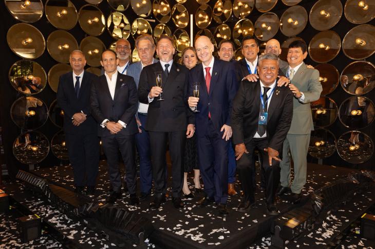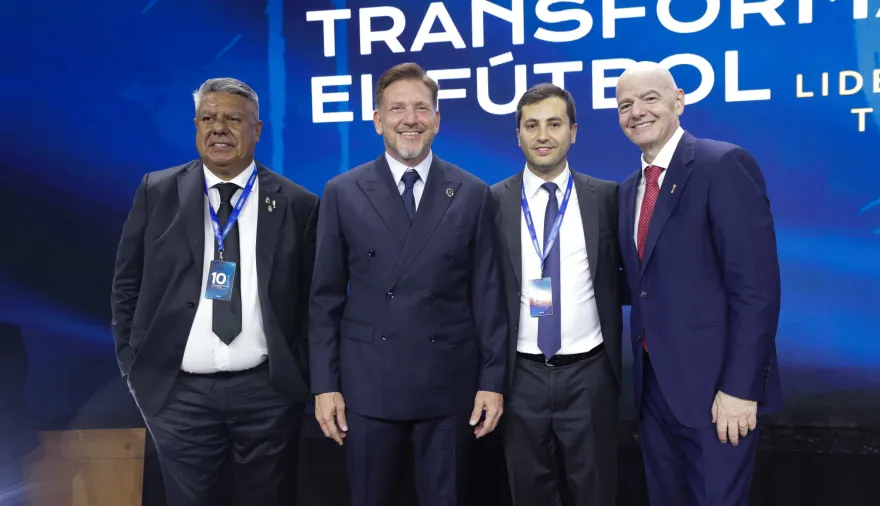 En su discurso, Domínguez destacó que desde hace una década la entidad impulsó "una transformación integral basada en gobernanza, transparencia, desarrollo y competitividad". Invitado a la tarima por el dirigente suramericano, Infantino recibió un reconocimiento de la organización denominado The Best for the Best "por haber unido al mundo del fútbol".