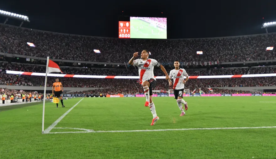 Con superioridad numérica, el local acentuó su dominio. Tras varios avisos, incluyendo una buena combinación entre Quintero y Montiel, la apertura del marcador llegó de la forma más estética posible. A los 40 minutos, Juanfer Quintero ejecutó un tiro libre magistral que se coló rozando el palo derecho de Nelson Insfrán, desatando el delirio en el Monumental.