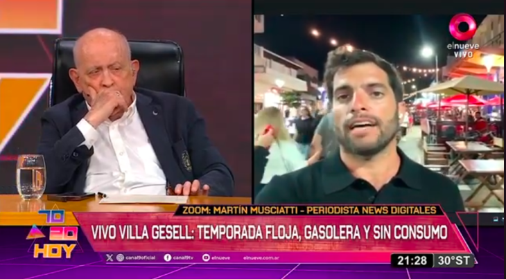 Desde ese lugar, el conductor puso en tensión el relato optimista con el malestar que aparece cuando se habla con quienes viven de la temporada. La discusión no fue ideológica, sino económica: ocupación sin consumo, gente sin plata, actividad sin rentabilidad.