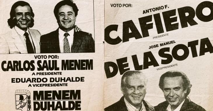 Del otro lado, estaba Carlos Saúl Menem -gobernador de La Rioja- que construyó una campaña disruptiva, cargada de símbolos federales, estética caudillista y promesas de “salariazo y revolución productiva” que conectaron con la mística histórica del movimiento y con sectores populares desencantados.