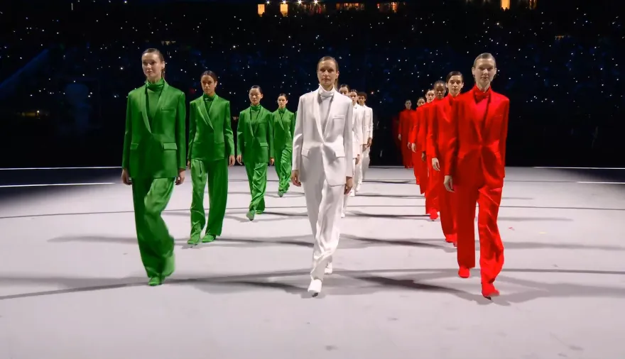 La música fue protagonista con las actuaciones de Laura Pausini cantando el himno nacional italiano, Andrea Bocelli y Mariah Carey, quienes emocionaron al público con interpretaciones que cruzaron fronteras culturales. Carey incluso sorprendió al interpretar una canción en italiano, mientras modelos vestidas por el catálogo de Giorgio Armani (recientemente fallecido) desfilaron con diseños inspirados en los colores de la bandera italiana.