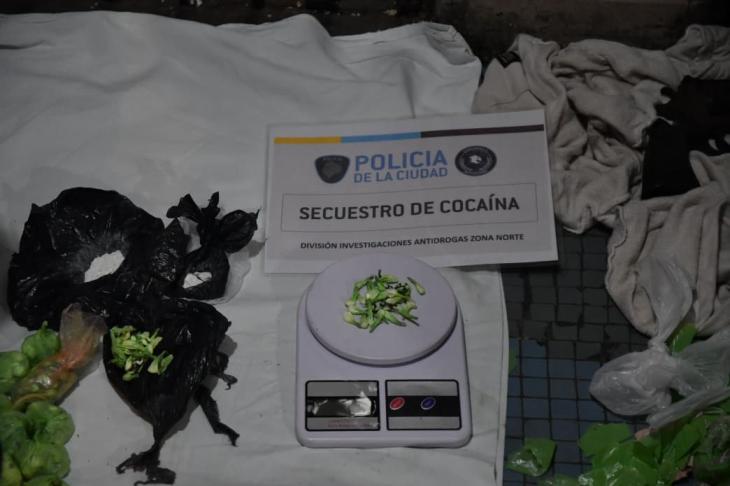 Los trabajos de campo revelaron que era una vivienda donde se comercializaba droga, y durante el allanamiento los oficiales de la Zona Sur de la División Investigación Antidrogas hallaron 35 dosis y una piedra de cocaína, un envoltorio y una planta de marihuana, además de una tijera con restos de cocaína y 18.000 pesos. Dos hombres, ambos argentinos mayores, fueron detenidos en el lugar.