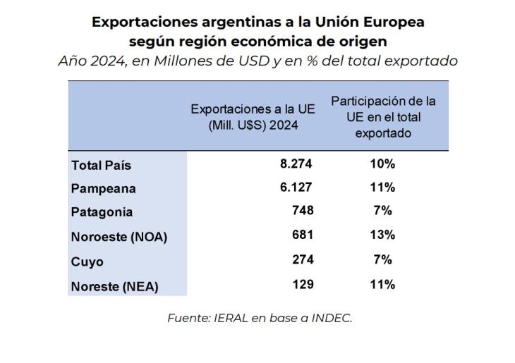 Los impactos más inmediatos se observarán en los sectores que ya exportan a la Unión Europea, a partir de la reducción de aranceles sobre el comercio existente. Actualmente, ese bloque explica alrededor del 10% de las exportaciones totales argentinas, equivalentes a unos USD 8.300 millones.