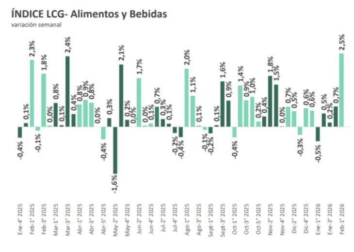 El dato publicado por la consultora LCG despertó las alarmas: los alimentos y bebidas relevados aumentaron 2,5% en la primera semana de febrero.