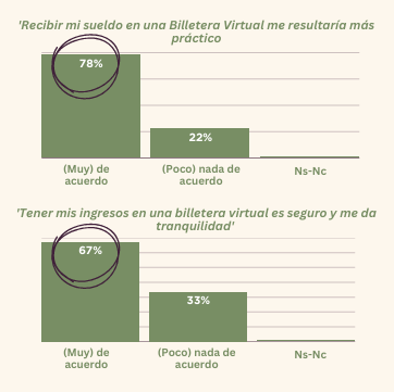 El cambio es aún más marcado entre los jóvenes. El 78% considera que cobrar su sueldo en una billetera virtual sería más práctico, mientras que el 67% sostiene que se trata de una herramienta más segura y que les brinda mayor tranquilidad.