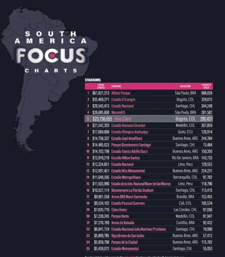 El último ranking regional publicado por la revista estadounidense Pollstar, referencia global en la industria de la música en vivo, dejó una lectura fuerte para el mercado argentino: sólo tres estadios de fútbol del país aparecen entre los recintos que más ingresos generaron por shows en vivo durante 2025.
