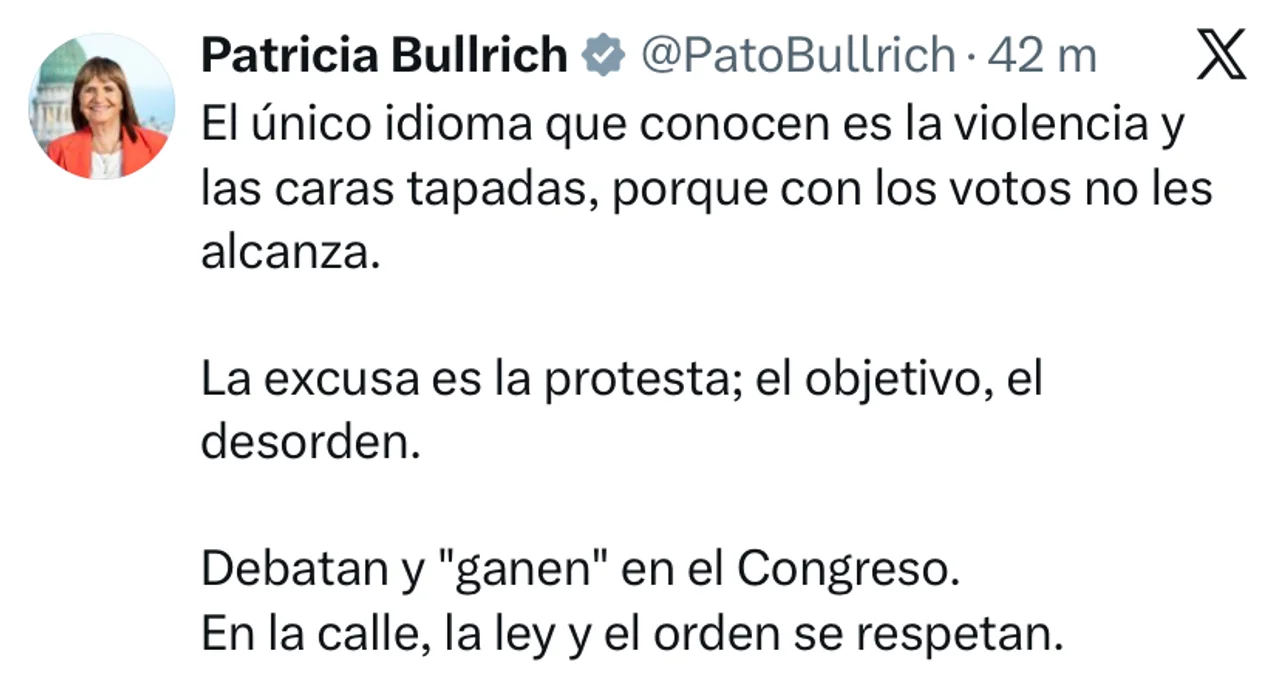 El mandatario acompañó la frase con imágenes y videos de los disturbios, en los que se observan enfrentamientos entre manifestantes y fuerzas de seguridad. La publicación se volvió rápidamente tendencia y profundizó la polarización política en torno a la protesta.