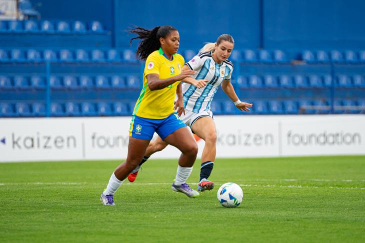 El encuentro comenzó cuesta arriba para la Albiceleste. Apenas iniciado el juego, Brendha, la número 10 brasileña, abrió el marcador con un gol de calidad. Sin embargo, la reacción argentina no tardó en llegar: a los diez minutos, Denise García Rojo aprovechó una oportunidad clara y selló el empate, demostrando que el clásico se jugaría de igual a igual desde el inicio.