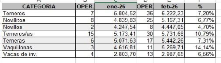 Todas las categorías registraron alzas respecto de enero y, especialmente, frente a un diciembre de 2025 que cerró con un alto volumen de invernada vendida que no logró enfriar los precios. Este 2026 inaugura una nueva etapa, construida sobre una demanda internacional insatisfecha y restricciones de stock en países exportadores clave como Estados Unidos.