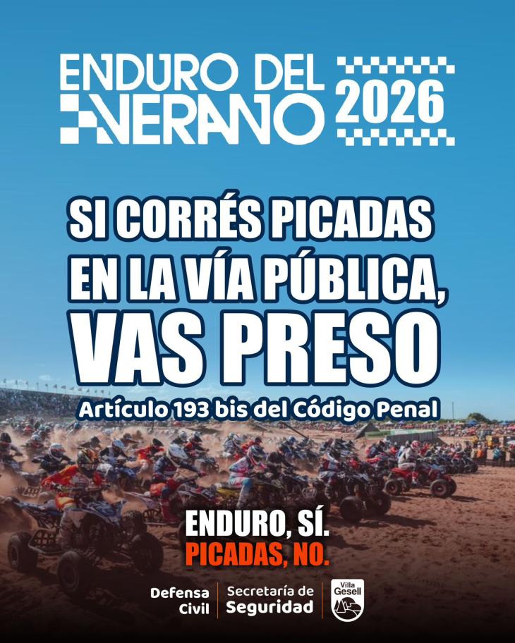Bajo el lema “Enduro sí, picadas no”, se difundieron flyers y mensajes en redes sociales que buscan marcar una diferencia clara: el Enduro es un deporte organizado y regulado, mientras que las picadas en calles o médanos son ilegales y peligrosas. El objetivo es desalentar prácticas clandestinas que ponen en riesgo tanto a participantes como a vecinos y turistas.