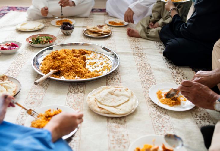 La jornada comienza antes del alba con el suhur, la comida previa al inicio del ayuno. Al caer el sol, el iftar marca el momento de romperlo, tradicionalmente con dátiles y agua, siguiendo el ejemplo atribuido a Mahoma. En muchas ciudades, el atardecer se convierte en una escena colectiva: familias, vecinos y comunidades enteras se reúnen para compartir la comida.