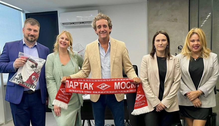 Como regalo la parte rusa entregó al dirigente deportivo la gorra de la Liga Rusa de Fútbol y la bufanda de Spartak de Moscú.