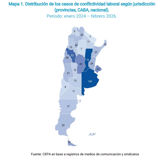 Desde el Centro de Economía Política Argentina (CEPA), destacaron que la conflictividad laboral viene acelerándose en la gestión de La Libertad Avanza.