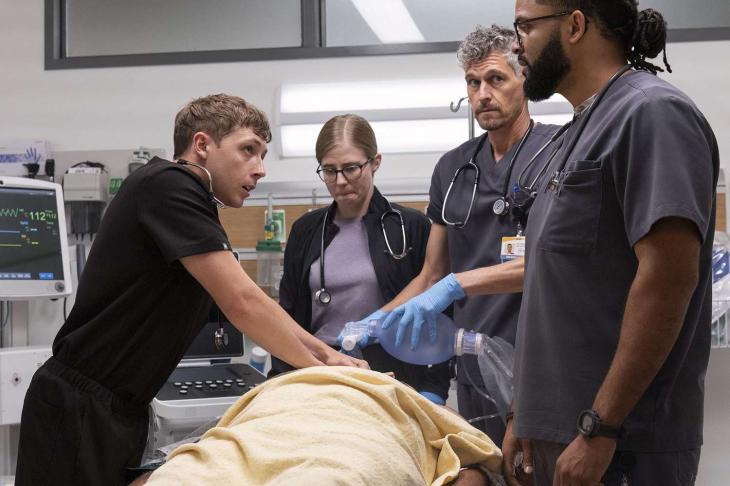 “En The Pitt lo organizaron de forma muy inteligente. Contrataron médicos reales que rotan en el set y coreografían la danza que hacemos en los traumas. También tienen enfermeros reales asegurándose de que las vías intravenosas y las máquinas se vean bien. Son muy específicos con el detalle”, explicó Ned Brower, que si bien no es parte formal del equipo de consultores médicos, fue incluido dentro de los correos que cruzaron antes de empezar a rodar para establecer la “cadena de mando” médica dentro del set. La idea era: si veían que algo no era realista, debían informarlo. “Querían que se hiciera profesionalmente”, contó el actor que interpreta al enfermero Jesse, que recordó que uno de los primeros errores que notó y que se corrigió rápidamente fue el ver cómo unos paramédicos ingresaban una camilla a la sala de emergencias con la cabeza hacia adelante: “Siempre se llevan con los pies para adelante, cualquier paramédico lo sabe”. Sin embargo, no quiso intervenir tanto y prefirió simplemente acotarse a las situaciones en las que los actores que hacían de enfermeros le consultaban por alguna cuestión práctica en particular, como la forma de manipular una vía. “A veces sé la respuesta, otras no. Solo llevo cinco años y medio como enfermero, no soy un novato, pero tampoco tengo la experiencia de mi personaje, Jesse, que lleva 25 años en urgencias”, reveló.