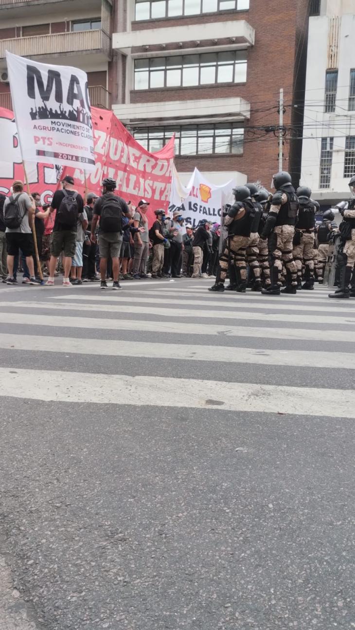 Luego de la violencia desatada por las fuerzas del orden, la columna se trasladó a la avenida Mitre, del lado de la localidad bonaerense de Avellaneda. A su vez la diputada contó que “estamos en el medio de un paro masivo muy importante de la clase trabajadora que se está expresando contra la reforma laboral esclavista, y estamos acá también para exigir a la conducción de la CGT y de la CTA que tenemos que continuar esta acción que ya fue contundente”, a la vez que exigió “un nuevo paro de 36 horas, activo”.
