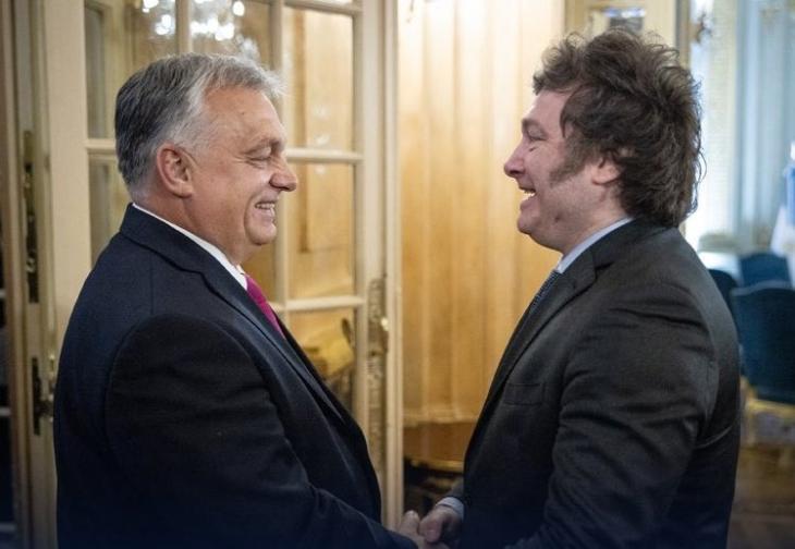 Milei and Orbán Share a Moment at the 'Board of Peace' Conference.