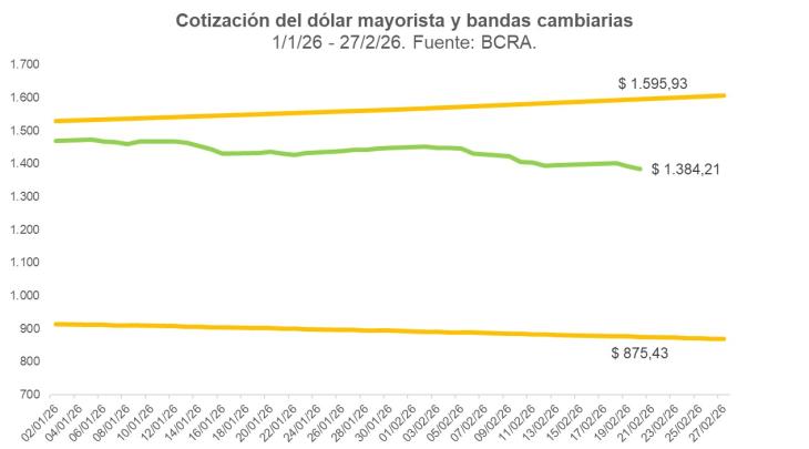 Así, en la tercera semana de febrero, el dólar operó 2% por debajo de las dos semanas anteriores y 3,9% menos que el nivel promedio de enero.