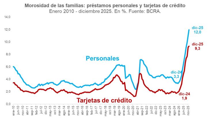 Con los datos a diciembre de 2025, el panorama es incluso peor que los niveles de pandemia, cuando ante la falta de ingresos, muchas familias y empresas no pudieron seguir pagando sus préstamos.